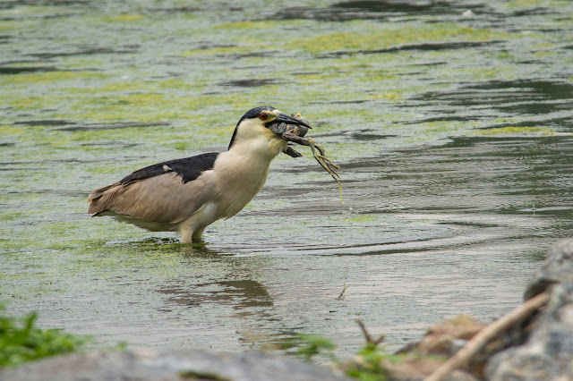 The answer was that not a lot was going on. The little island where I'd seen so many nests last year seemed a little less populated. I don't know if having less moisture this spring was a factor. But the one bird I saw in abundance were Black-crowned Night Herons, which I appreciated since I have trouble getting clear looks at the ones who roost at the UT Southwestern Medical Center rookery back in Dallas.
